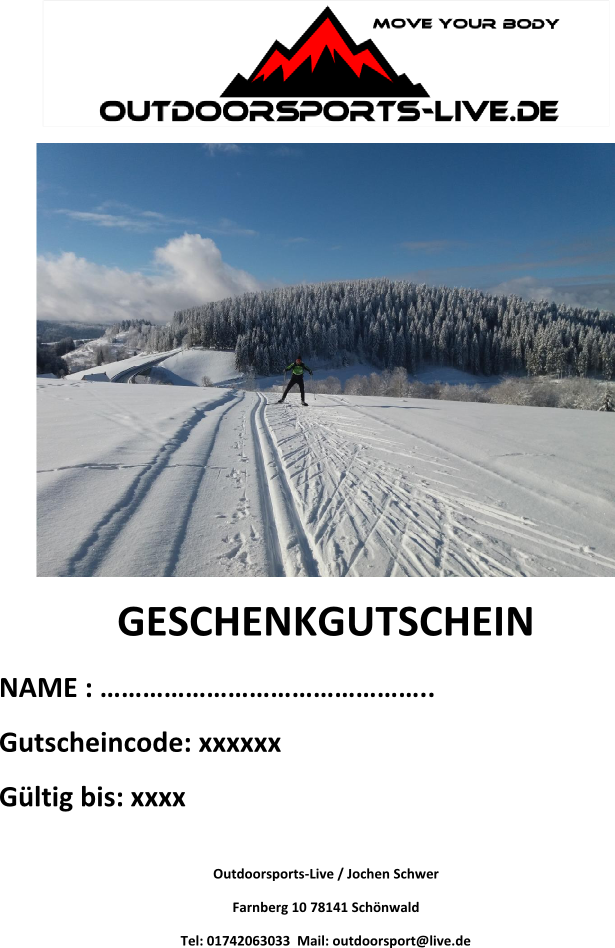 Die Gutscheine werden ausschließlich von Outdoorsports-Live erstellt und versandt.